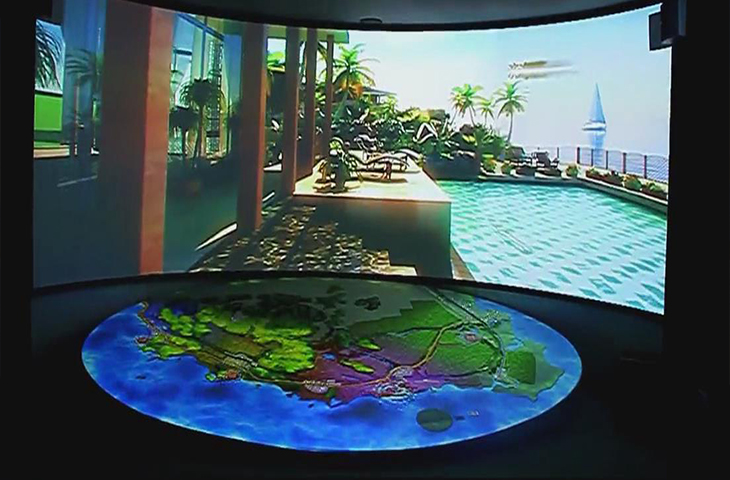 在城市規劃館中,為了能夠更好的展示城市的面貌,很多規劃館會選擇弧幕投影來展示城市的風采。因為弧幕投影超大的畫面以及震撼的視聽感受都能讓人充分的感受城市的風光以及發展宏圖。